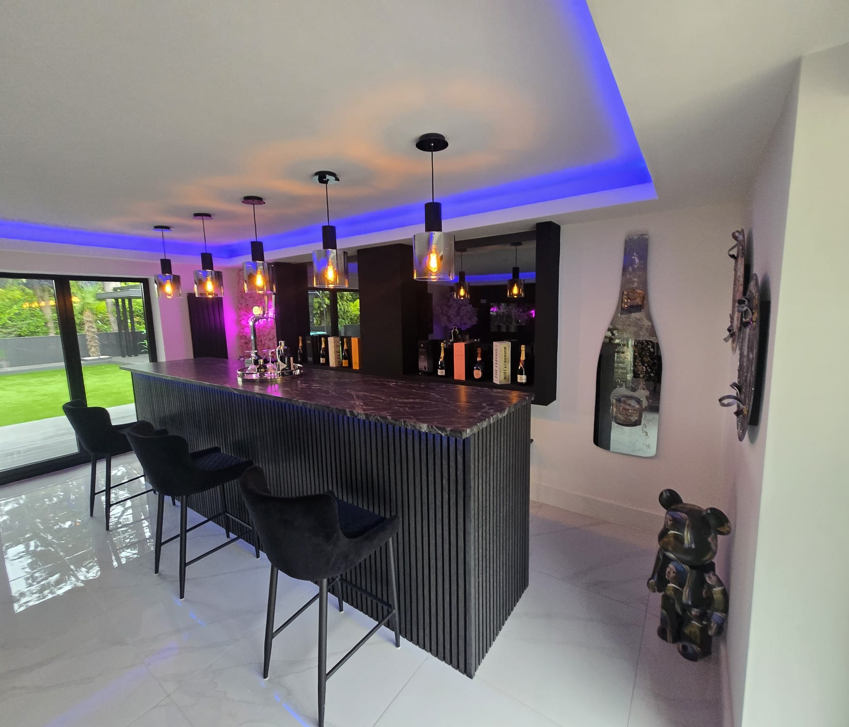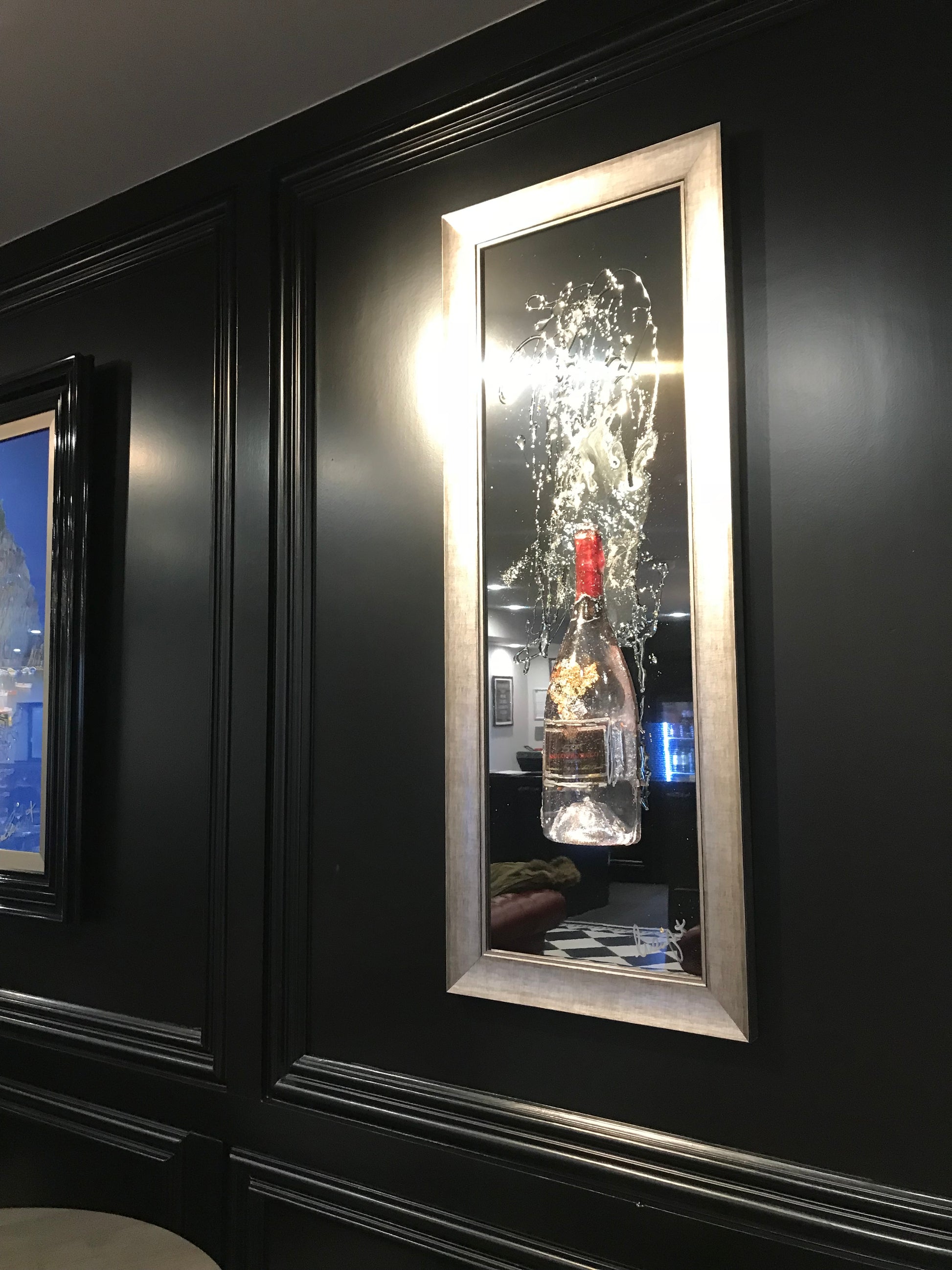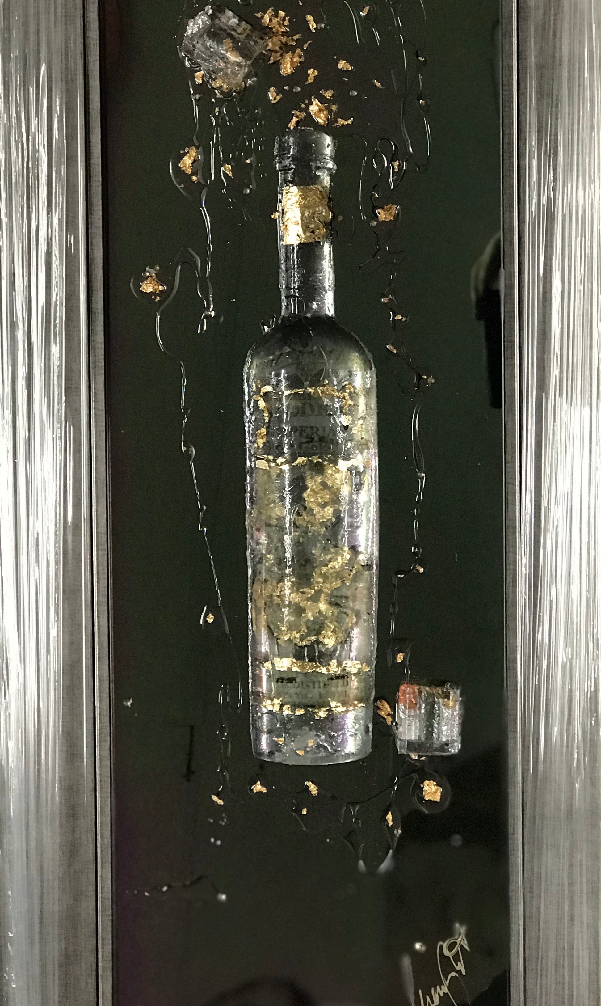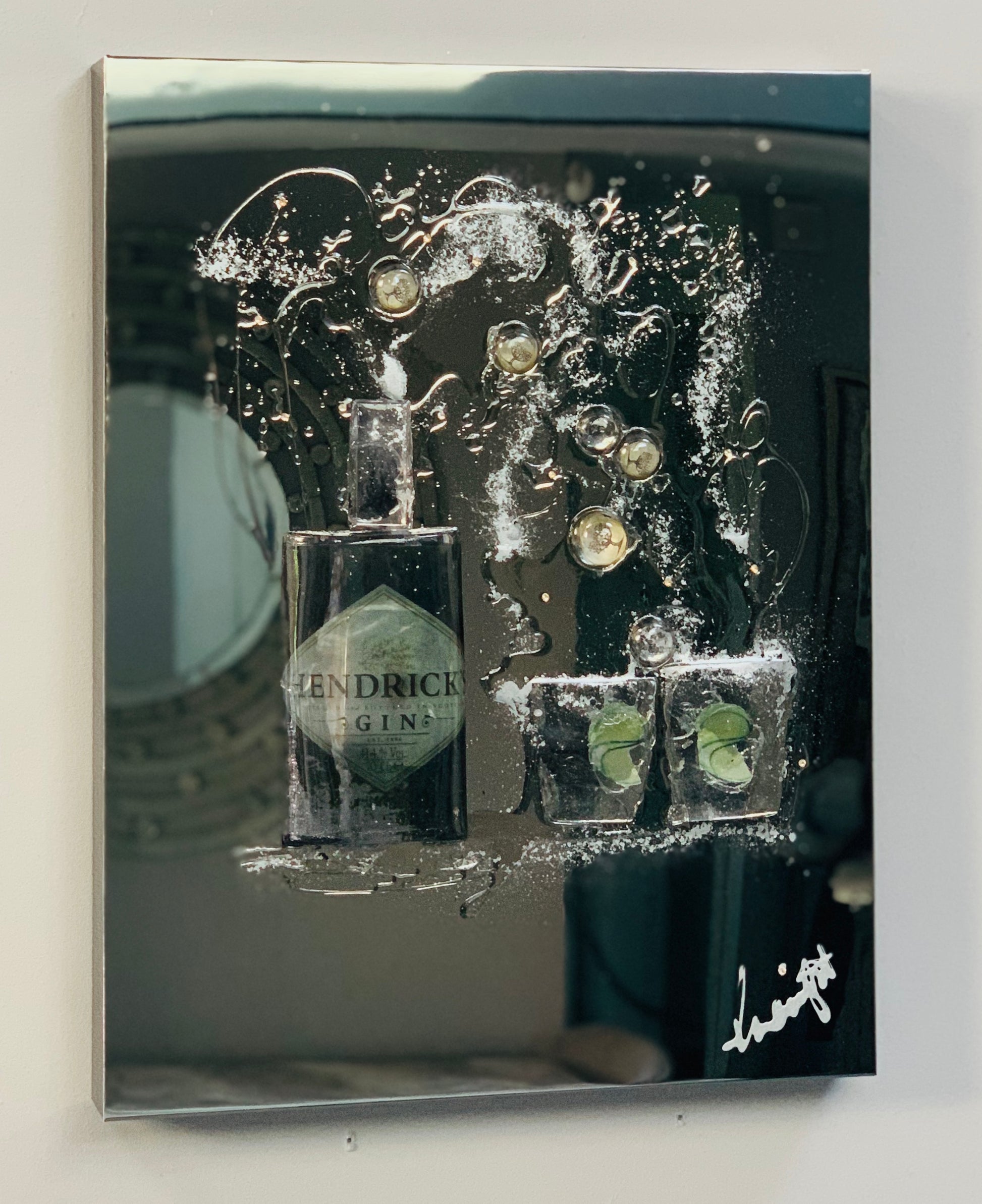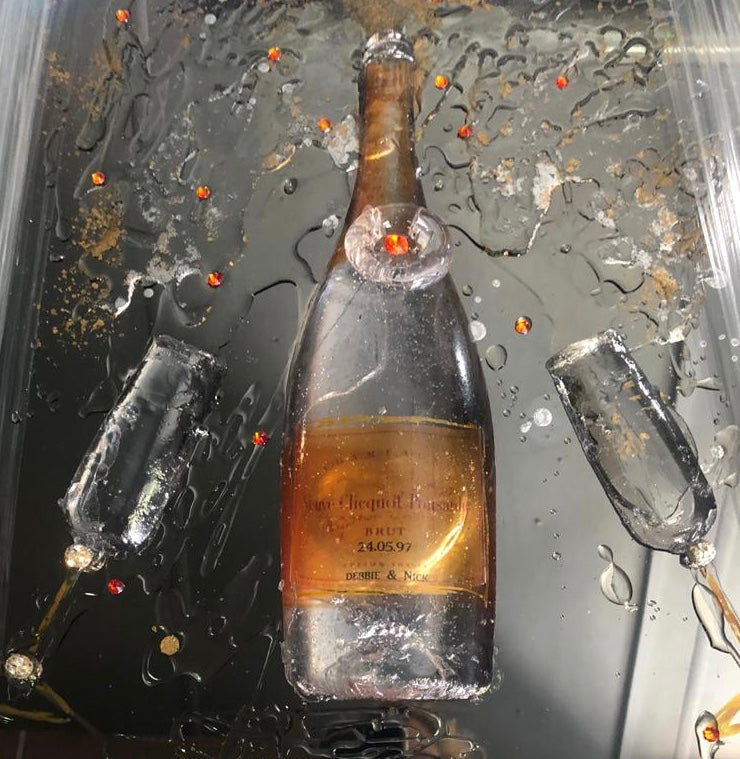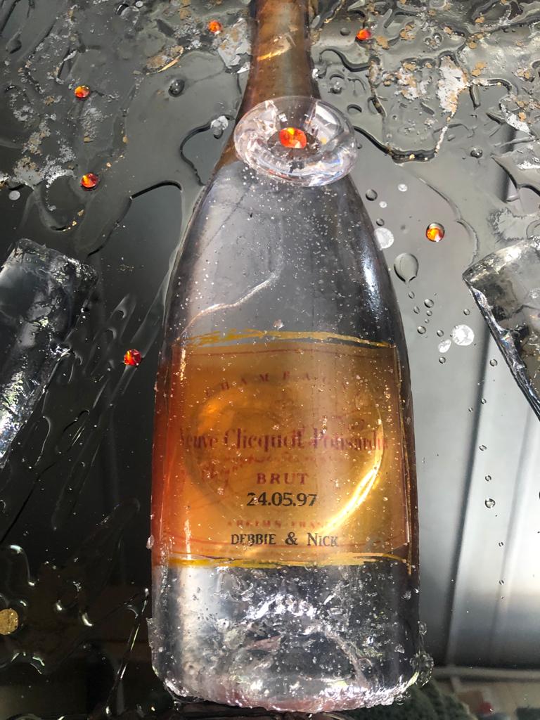 Aluminium base with 3d resin bottles /personalised labels with anniversary dates /special occasions …choose your tipple and we will make it …. Bottle bar 110 x 65 cm (. Small versions available 50mx 65 cm £649)