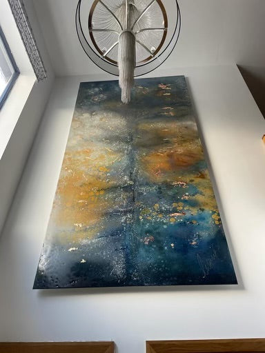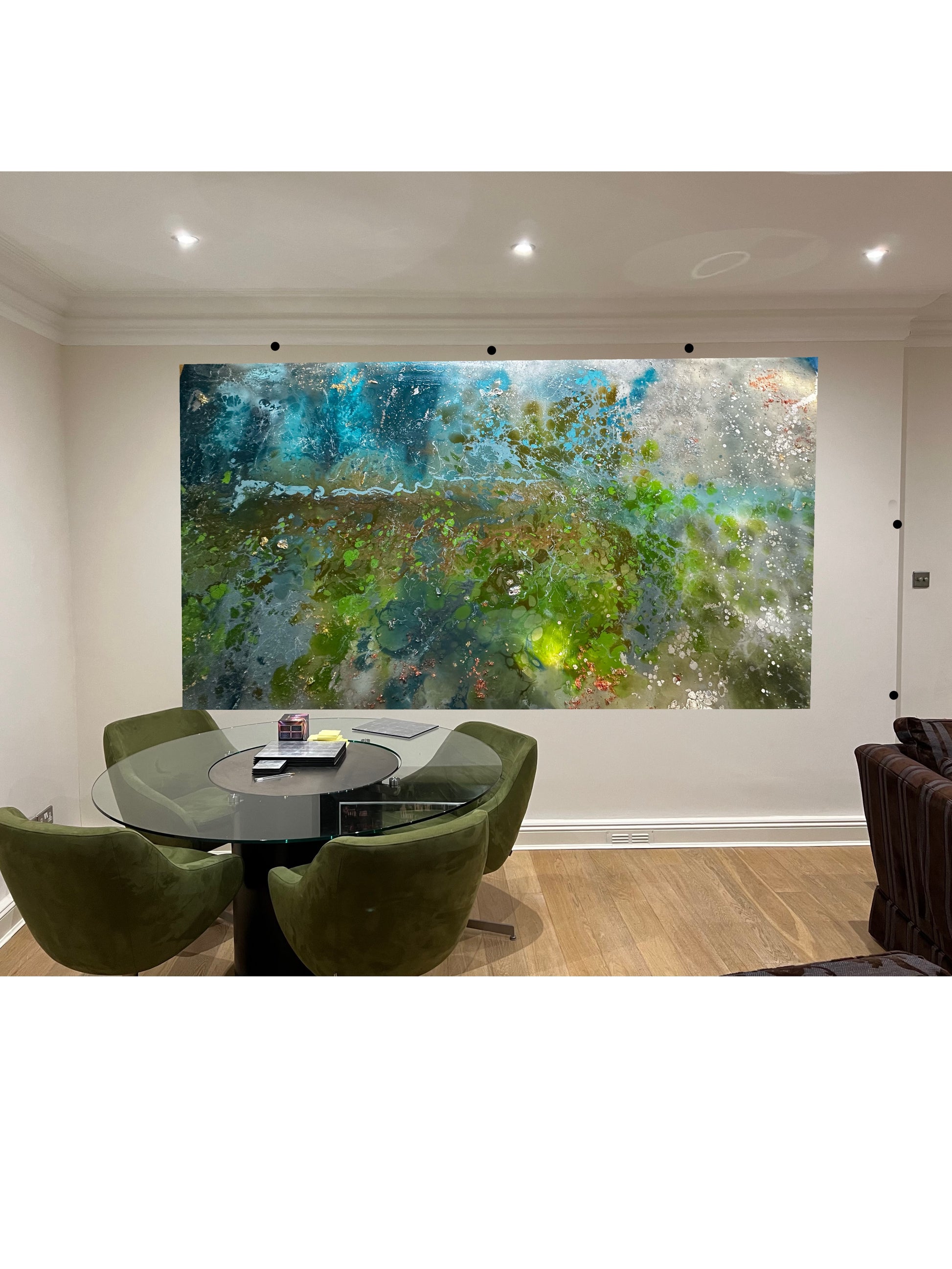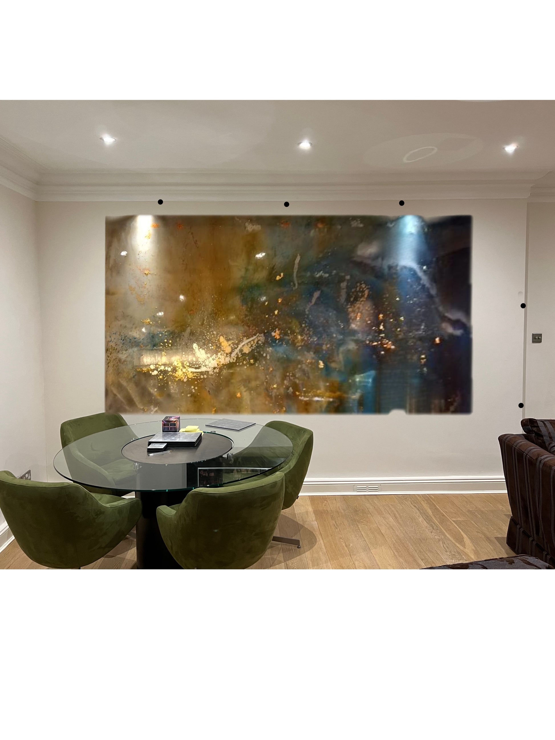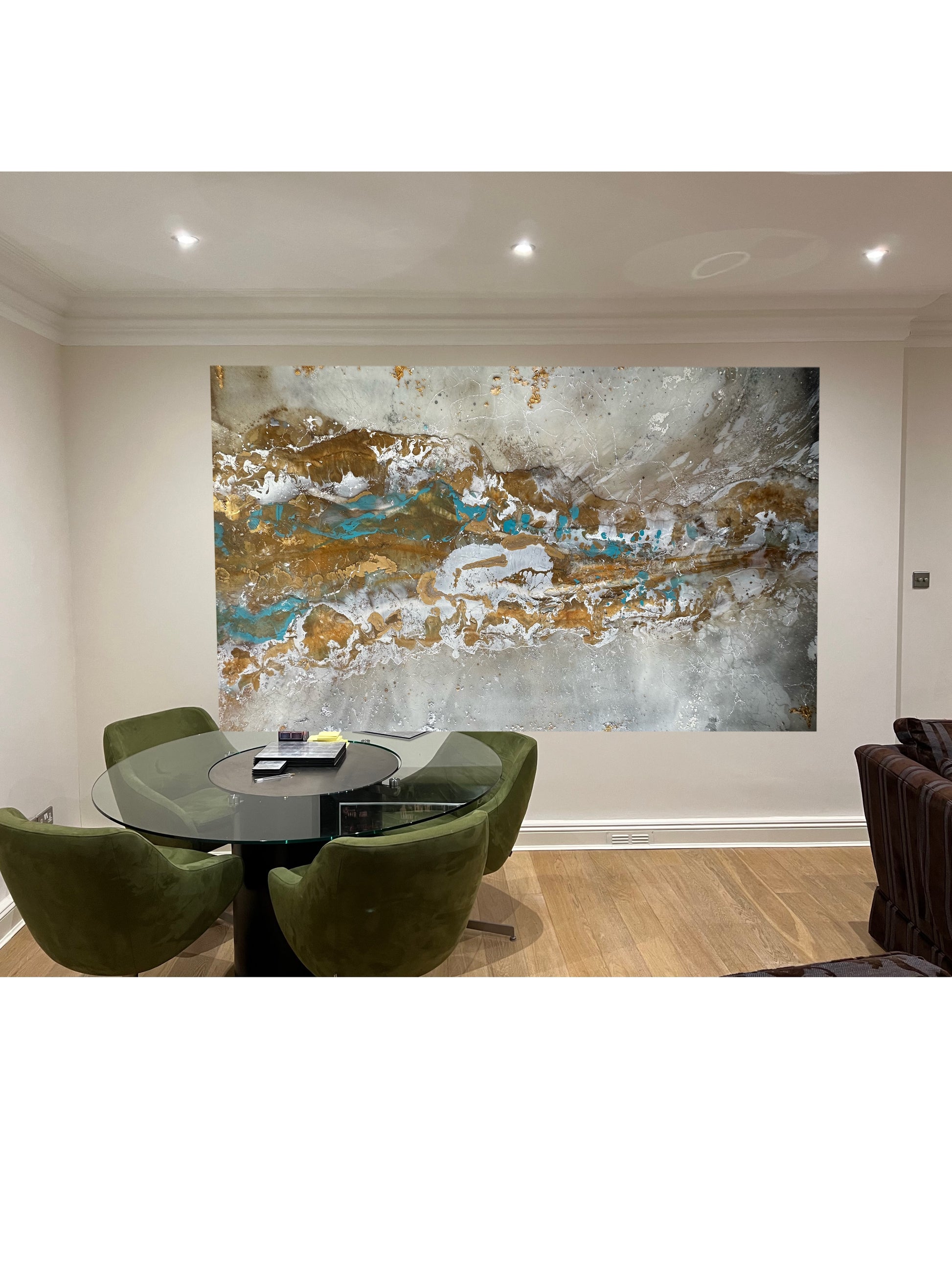 Bespoke Resin marble effect art installations incorporating texture , metallic leaf, acrylics. Created in colours of your choice . Panels start at 150 cm x 75 cm up to 3.5 m x 1 .5 m and any size in between